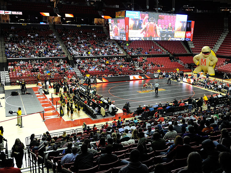 Wrestling and gymnastics combined for the inaugural Beauty and the Beast match, which brought 2,091 fans to the XFINITY Center. Wrestling increased average attendance nearly 150 percent in its first season in the Big Ten while gymnastics increased meet attendance by 60 percent. The gymnastics team also broke Maryland’s single season meet attendance record twice, including 2,207 fans on Feb. 7.