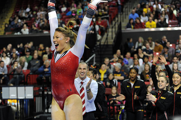 The Terps hosted then-No. 11 Minnesota in their inaugural Big Ten home meet in January. The Terrapins shocked the nation, upsetting the Gophers 194.325-193.350. Senior Karen Tang tied a program record on bars, racking a score of 9.925. Later in the season head coach Brett Nelligan reached his 100th career victory in a tri-meet win against Brown and Texas Women’s University.