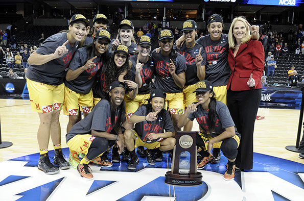 The Terps traveled to Spokane, Wash., for regional and faced former ACC rival Duke in the Sweet Sixteen. Rising junior Shatori Walker-Kimbrough led the way with 24 points and rising junior Brionna Jones added a double-double to lead the Terrapins into the Elite Eight with a 65-55 victory.