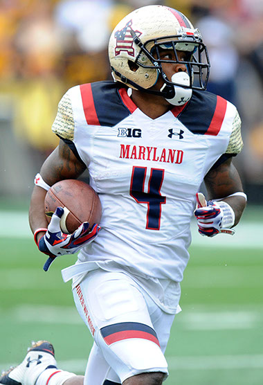 Inspired by the uniforms of the 1961 Terrapin Football Team, the Under Armour Flashback uniform channels its design from the Terps’ first-ever victory over current Big Ten rival, Penn State. The Team wore these uniforms against Penn State on October 24, 2015 in M&T Bank Stadium in Baltimore.