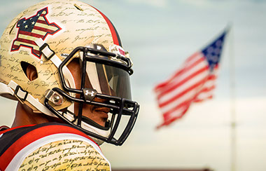 The Maryland Pride 2.0 uniform and helmet design were inspired by characteristics specific to the iconic Maryland state flag. Included were aspects of the black, red and gold state colors and distinct, segmented design patterns found on the Maryland flag as it waves.